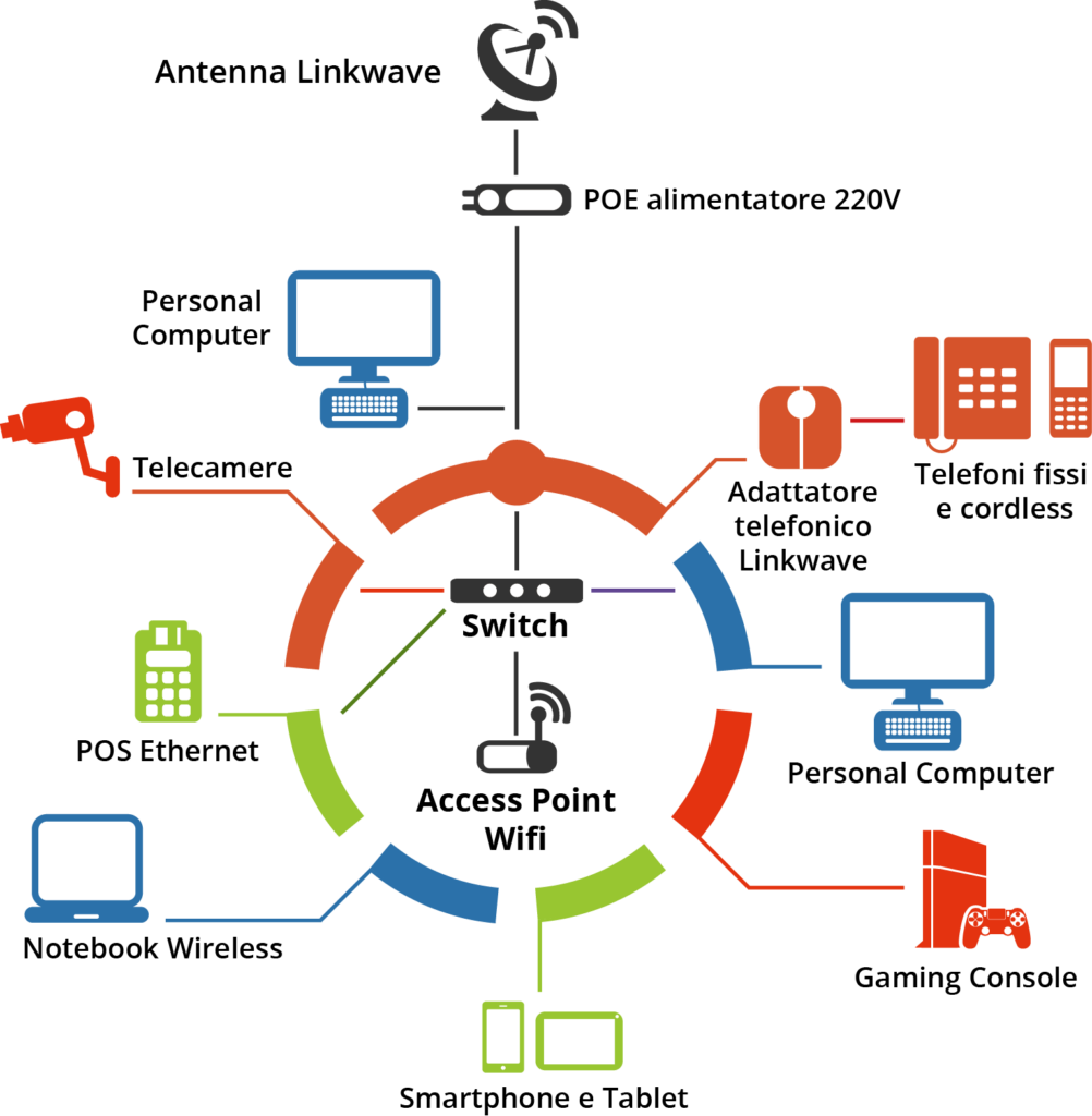 Per la realizzazione delle nostre reti, utilizziamo tecnologie wireless innovative che hanno raggiunto una versatilità ed una affidabilità tali da essere una valida e collaudata alternativa alle tradizionali tecnologie basate sul cavo. Linkwave è la soluzione ideale per avere internet veloce anche in zone non coperte dai servizi tradizionali quali adsl o fibra.